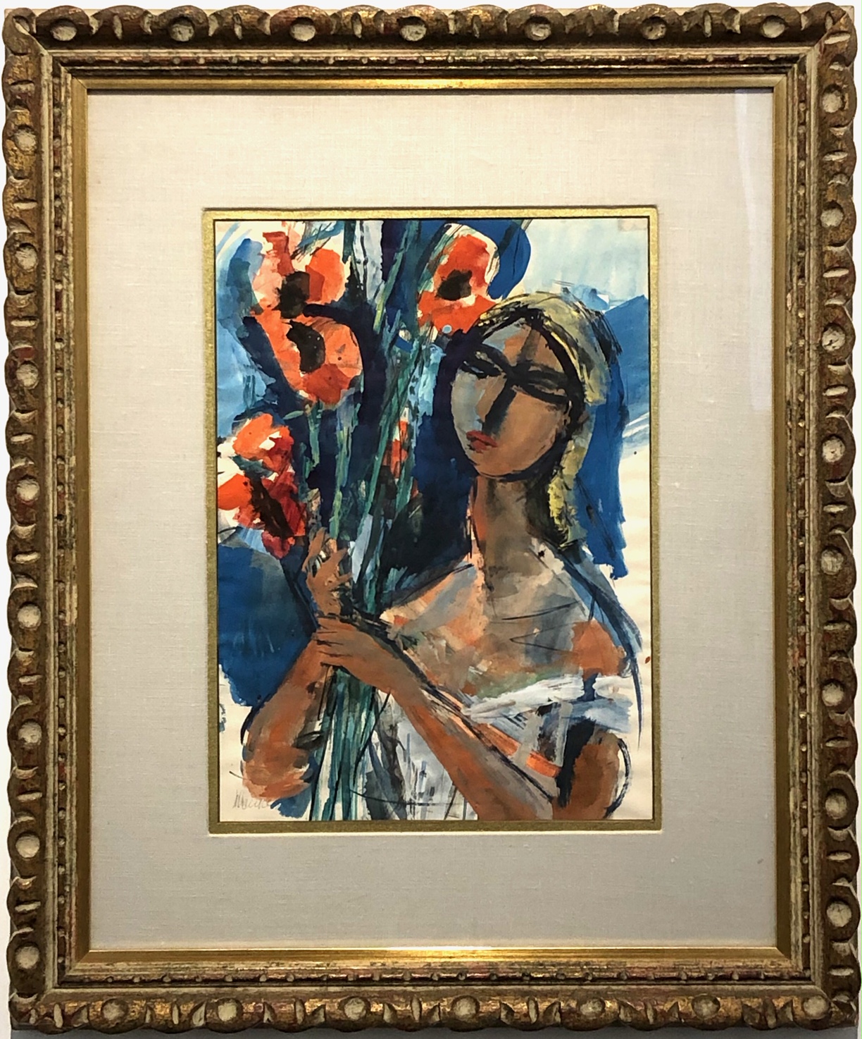 Menkes, Zygmunt (1896-1986) "Woman with Poppies" gouache 15"x10.5"
